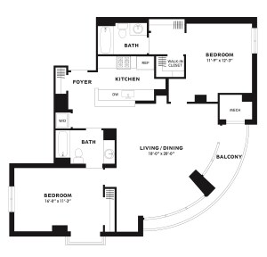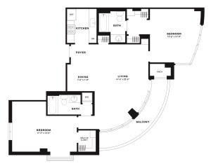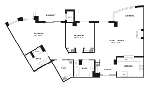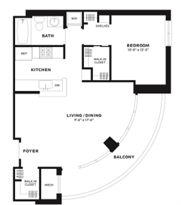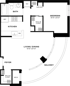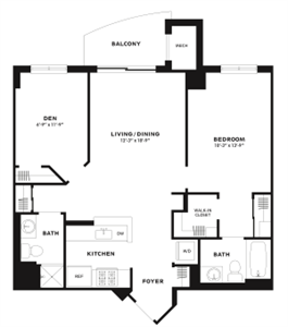 Modelo de apartamento: AA02$2,5331 Dormitorio, 1 Baño, 679 sq ftDisponible Ahora![]()