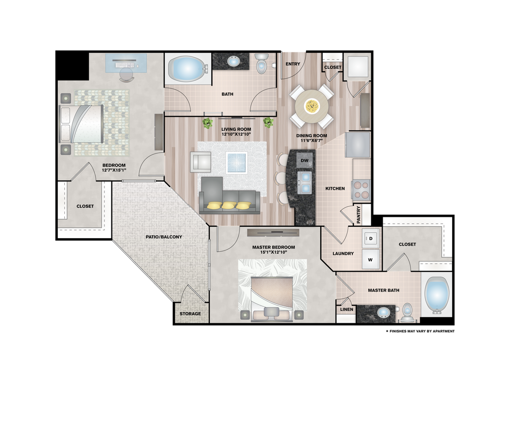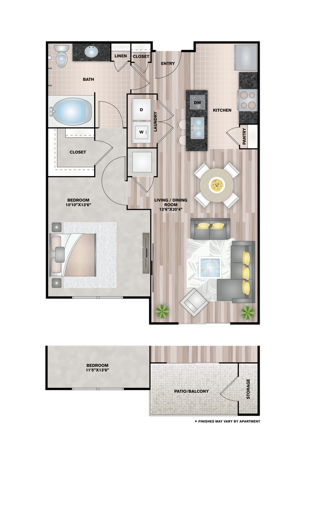 1 Dormitorio, 1 Baño, 802 pies²Disponible AhoraGalería del Modelo