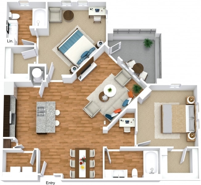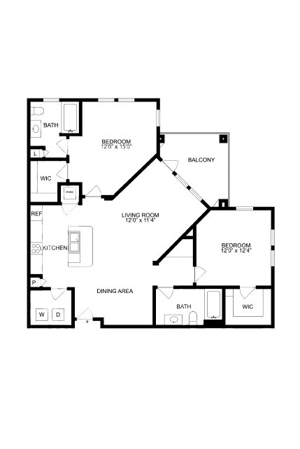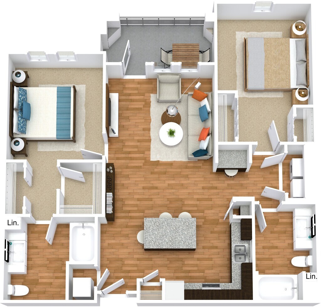 Modelo de apartamento: A4Desde $1,4001 Dormitorio, 1 Baño, 857 sq ftDisponible Ahora![]()