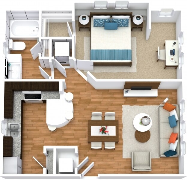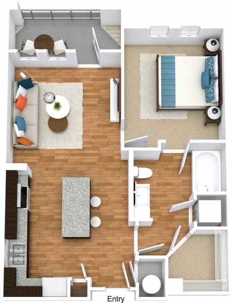 1 Dormitorio, 1 Baño, 638 pies²Disponible AhoraGalería del Modelo