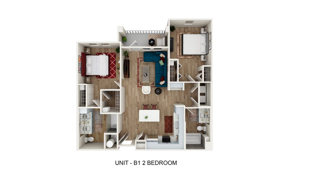 Modelo de apartamento: B1Desde $1,8002 Dormitorios, 2 Baños, 1161 sq ftDisponible Ahora![]()