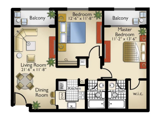 Modelo de apartamento: Model 2-2$2,1902 Dormitorios, 2 Baños, 830 sq ftNo Disponible![]()