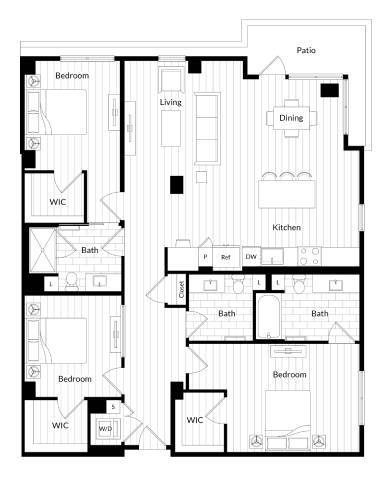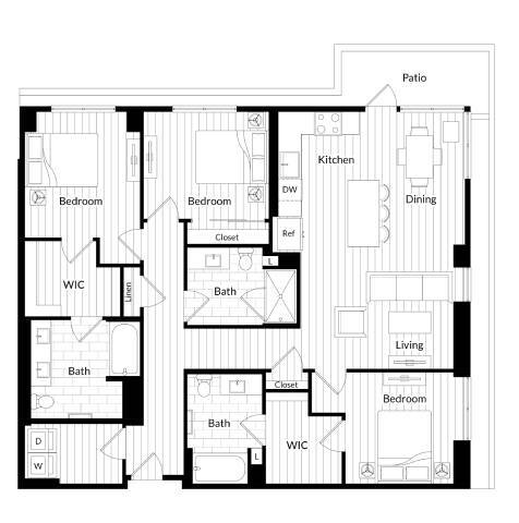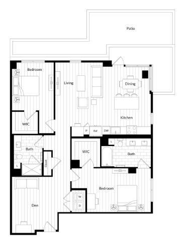Estudio, 1 Baño, 650-744 pies²Disponible AhoraEl más grandeEsta opción tiene las unidades más grandes para este modeloGalería del Modelo