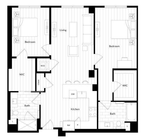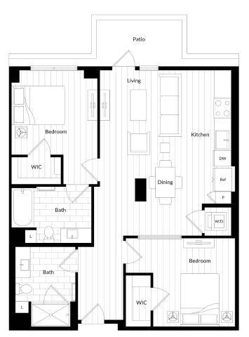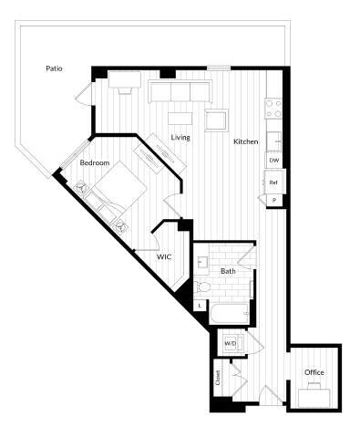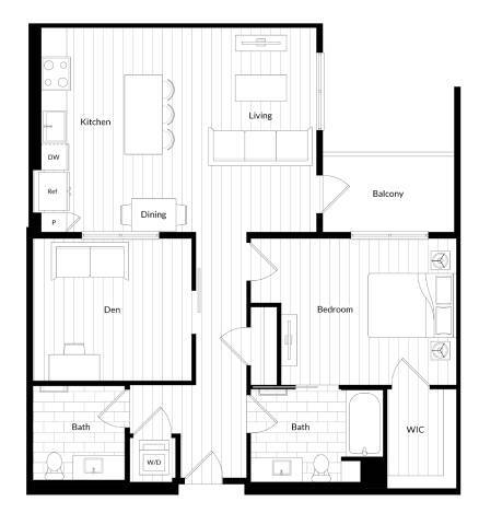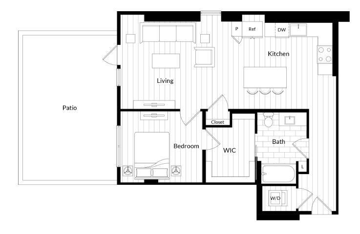 1 Dormitorio, 1 Baño, 689-740 pies²Disponible AhoraGalería del Modelo