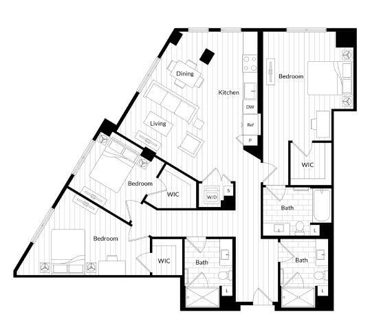 S2 - Plano 1 Unidad de apartamento: 1643Modelo de apartamento: S2$2,665Estudio, 1 Baño, 557 sq ftDisponible AhoraPlano: S3