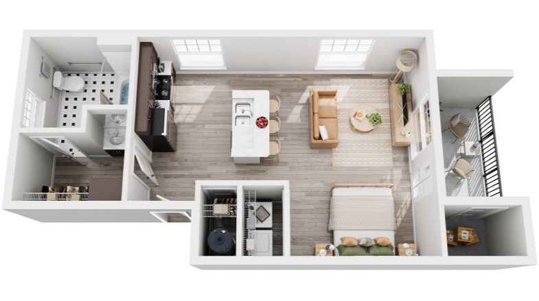 1 Dormitorio, 1 Baño, 728 pies²Disponible AhoraGalería del Modelo