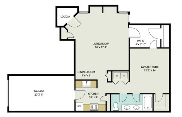 Modelo de apartamento: AberdeenDesde $1,3281 Dormitorio, 1 Baño, 850 sq ftNo Disponible![]()