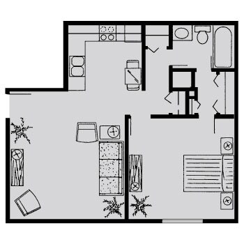Modelo de apartamento: A1 Dormitorio, 1 Baño, 619 sq ftNo DisponibleA - Plano 1 2 Dormitorios