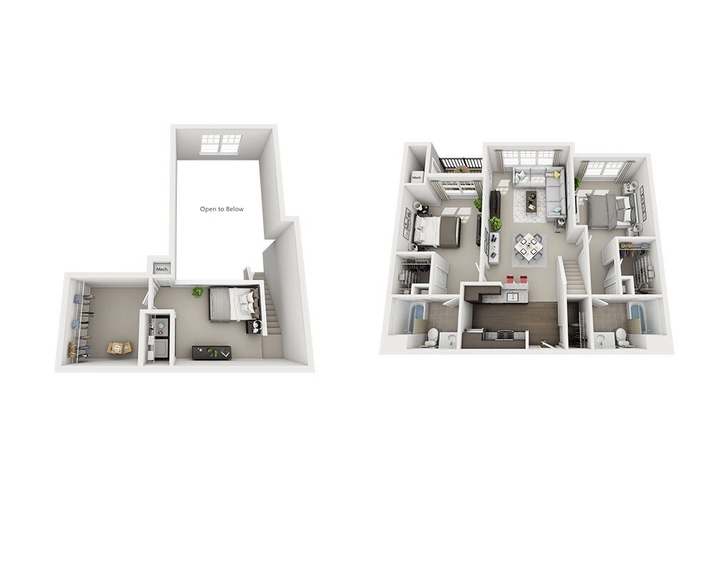 1 Dormitorio, 1 Baño, 824 pies²Precio Mensual TotalDisponible Dec 3Galería del Modelo