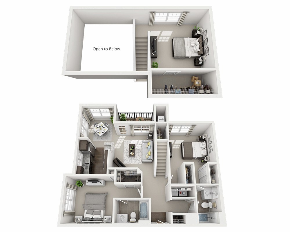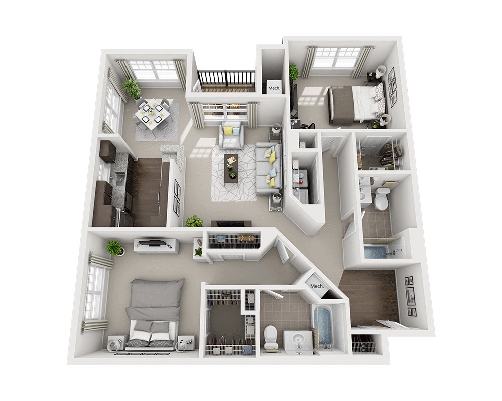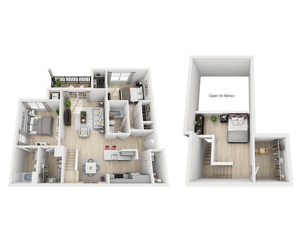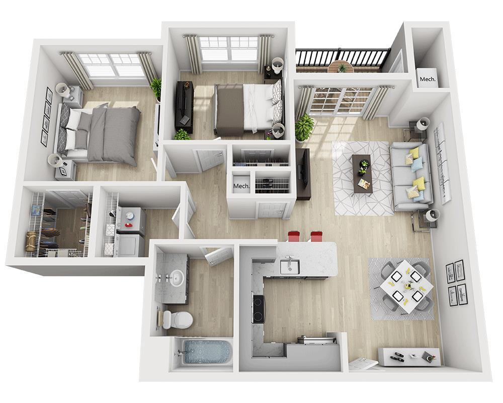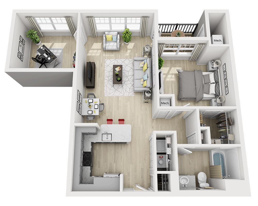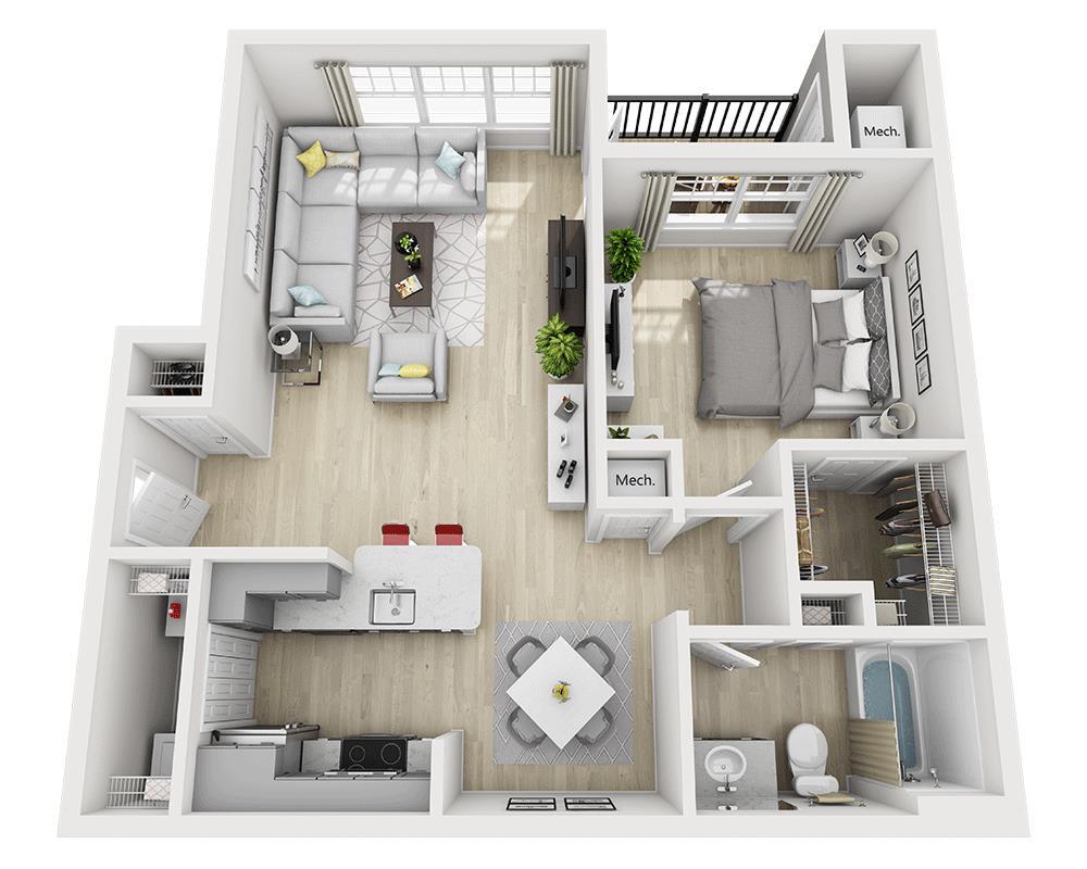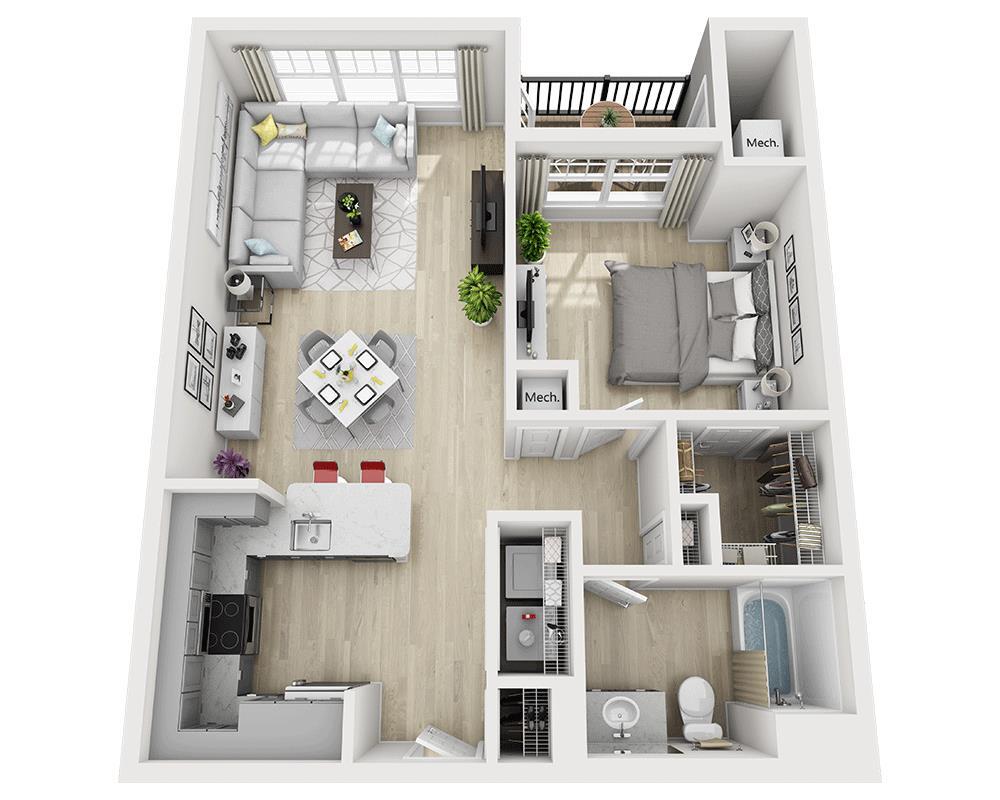 Modelo de apartamento: One Bedroom A1BDesde $2,5641 Dormitorio, 1 Baño, 842 sq ftDisponible Ahora![]()