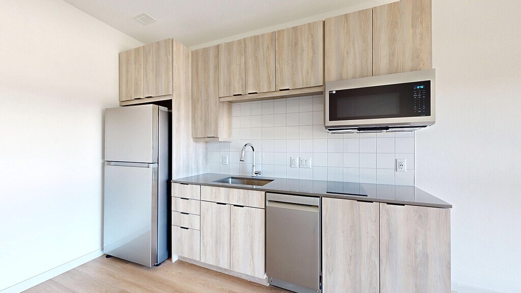 Con una ubicación perfecta entre el vecindario Sunnyside y la vitalidad del centro de Denver, Iota Fox Station ofrece un estudio totalmente nuevo, apartamentos de uno y dos dormitorios. Las cocinas de diseño cuentan con electrodomésticos de acero inoxidable, encimeras de cuarzo, lavavajillas, cocina eléctrica y microondas. Cada apartamento viene equipado con su propia lavadora/secadora y unidad de calefacción y refrigeración empotrada en la pared. Para una máxima eficiencia del espacio, algunos apartamentos tienen su propia cama plegable tipo Murphy. Todos pueden disfrutar del lujoso lounge y la terraza en la azotea, el lounge del espacio de trabajo y el gimnasio en esta comunidad gestionada en el hotel. Aceptamos mascotas y disponemos de estacionamiento. Cuando llegue el momento de explorar, suba al tren ligero hacia el centro y pruebe todo lo que Denver tiene para ofrecer, o camine hasta los vecindarios Sunnyside o Highland para disfrutar de un bocado rápido o beber con amigos.