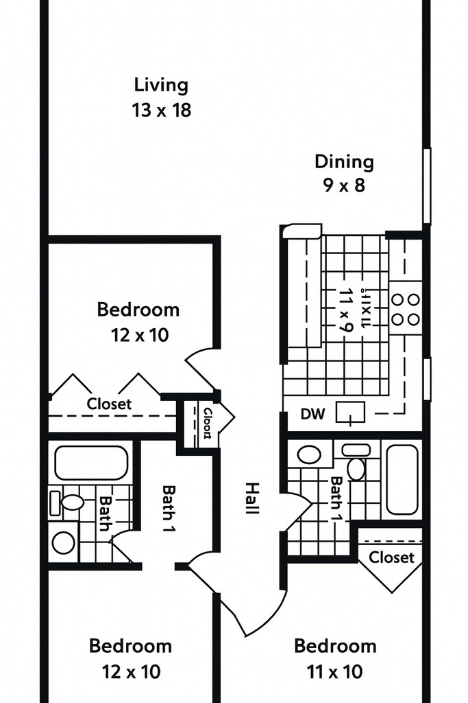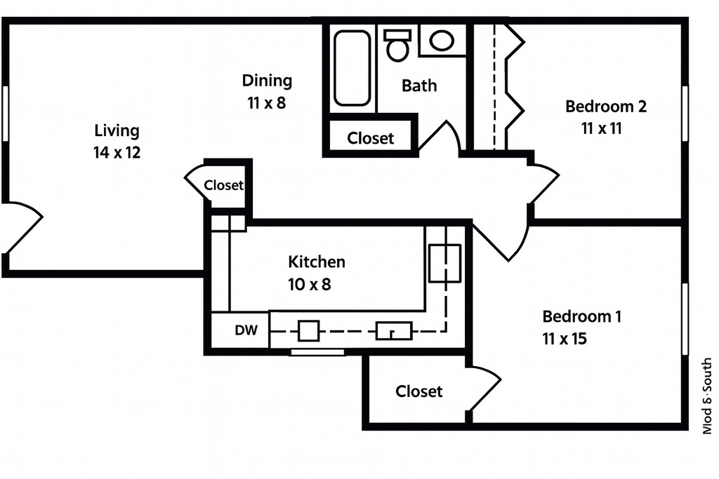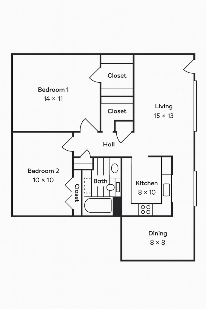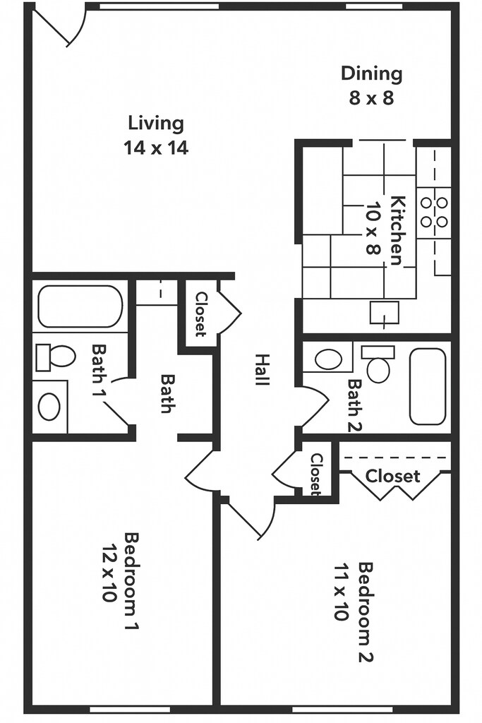 Modelo de apartamento: 2 Bedroom 1 BathroomDesde $1,1992 Dormitorios, 1 Baño, 756-803 sq ftDisponible Ahora![]()