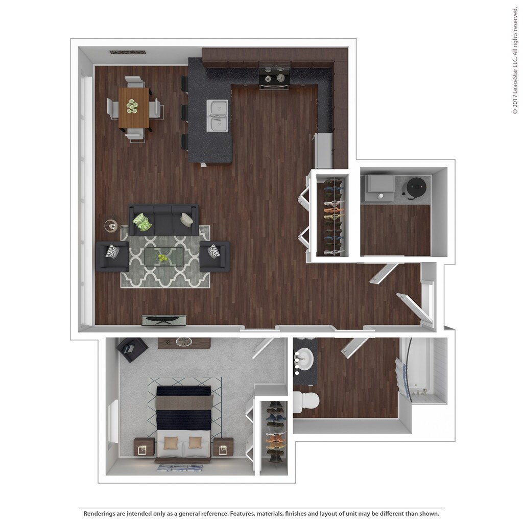 1 Dormitorio, 1 Baño, 877 pies²El más grandeEsta opción tiene las unidades más grandes para este modeloGalería del Modelo