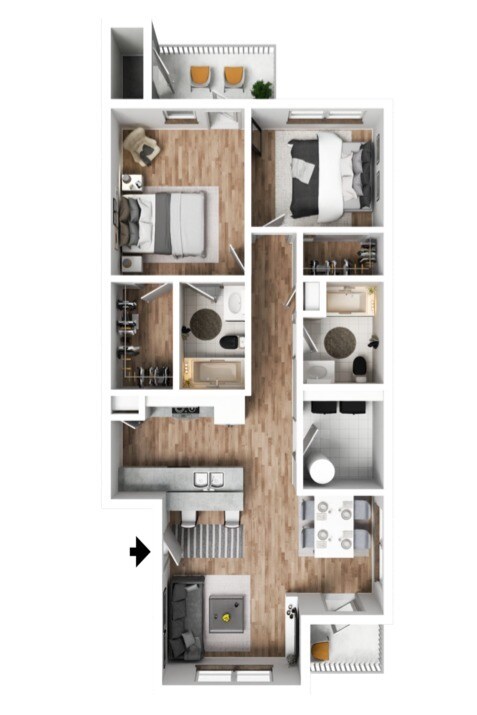 3 x 2 - Plano Unidad de apartamento: 7303Modelo de apartamento: 3 x 2$1,6653 Dormitorios, 2 Baños, 1318 sq ftDisponible Ahora