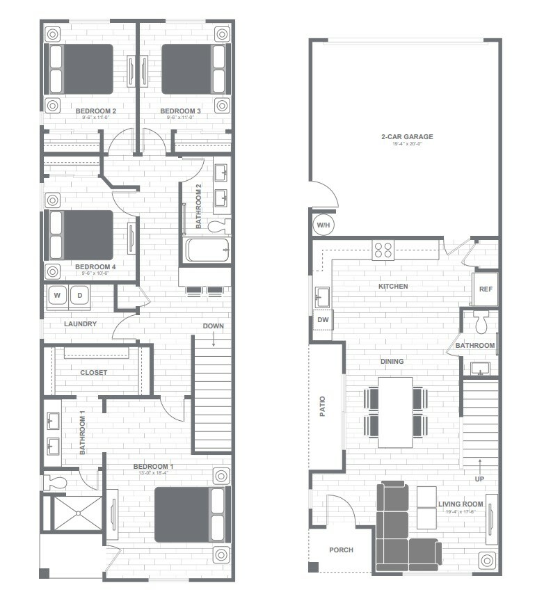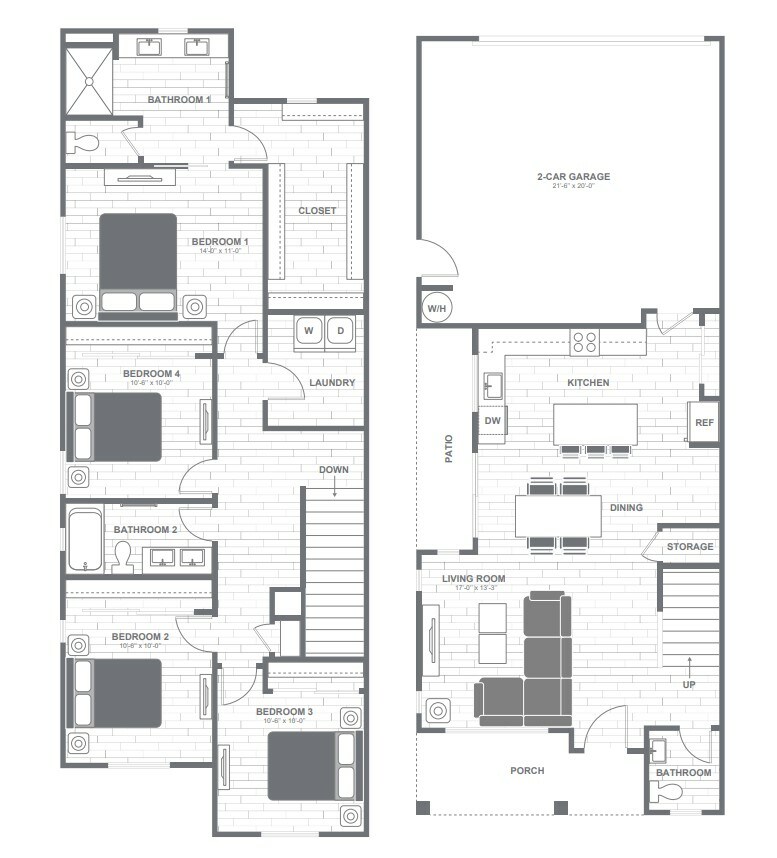 4 Dormitorios, 2.5 Baños, 1800 pies²Disponible AhoraGalería del Modelo
