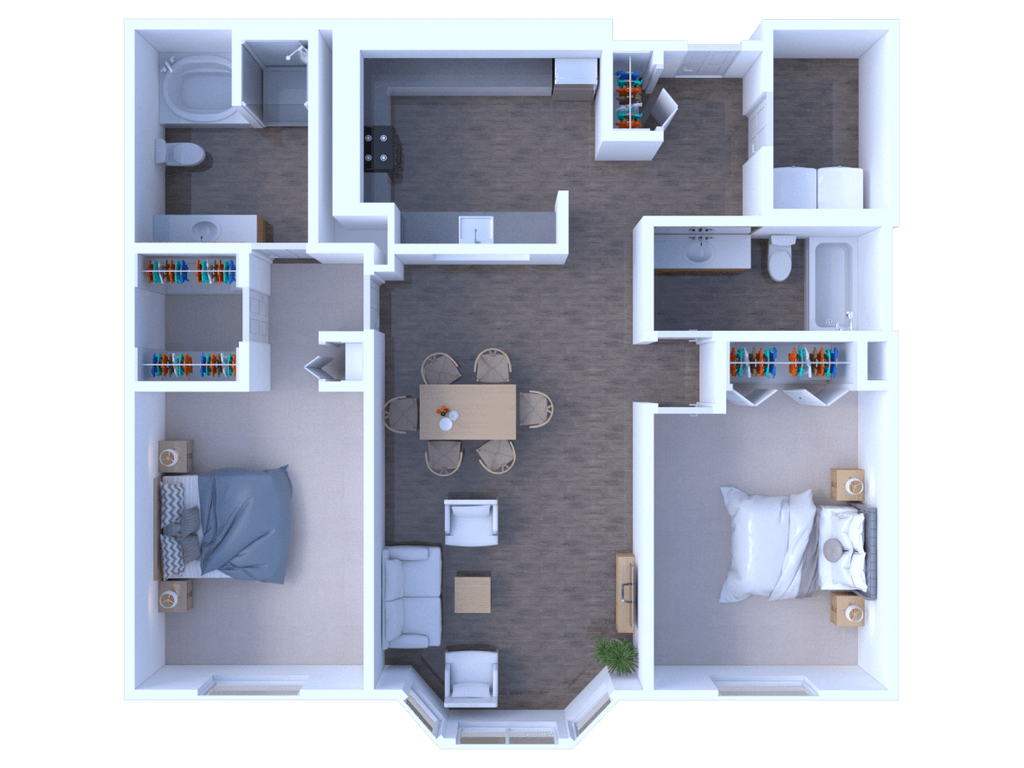1 Dormitorio, 1 Baño, 705-1027 pies²Disponible AhoraGalería del Modelo