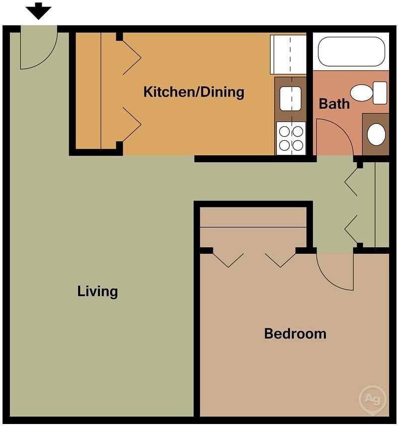 Modelo de apartamento: 1 Bedroom - No Balcony$7751 Dormitorio, 1 Baño, 600 sq ftNo Disponible![]()
