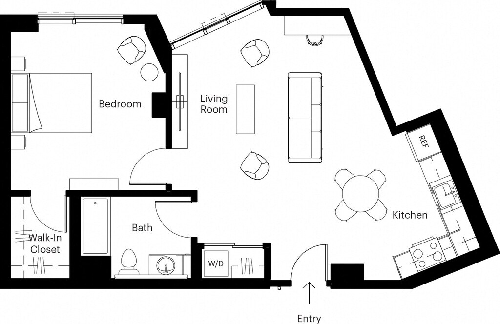 Modelo de apartamento: One Bedroom 051 Dormitorio, 1 Baño, 639 sq ftDisponible AhoraLos planos de la planta son una interpretación artística. Todas las dimensiones son aproximadas. Los tamaños o el detalle del producto real y sus especificaciones pueden variar. No todas las características están disponibles en todos los hogares para rentar. Los precios y la disponibilidad están sujetos a cambios. El alquiler que se muestra es mensual. Se pueden aplicar ciertos cargos, por ejemplo, entrega de paquetes, recolección de basura, agua, servicios, etc. Depositos varian. Consulta a un representante para conocer detalles.