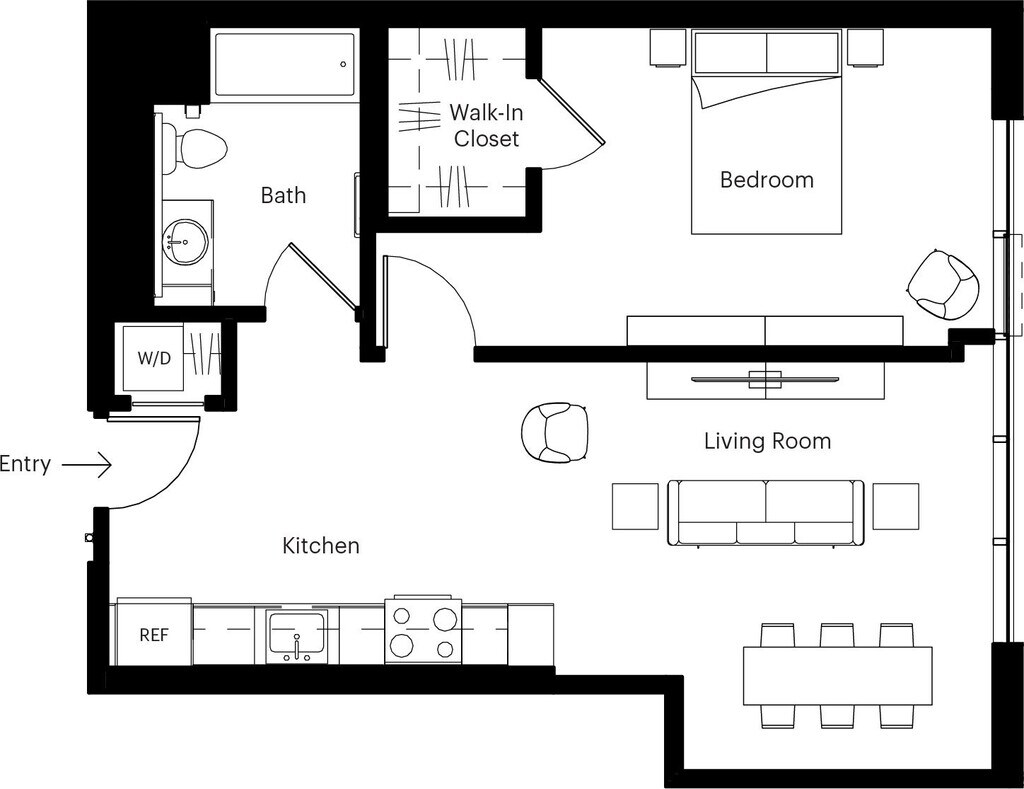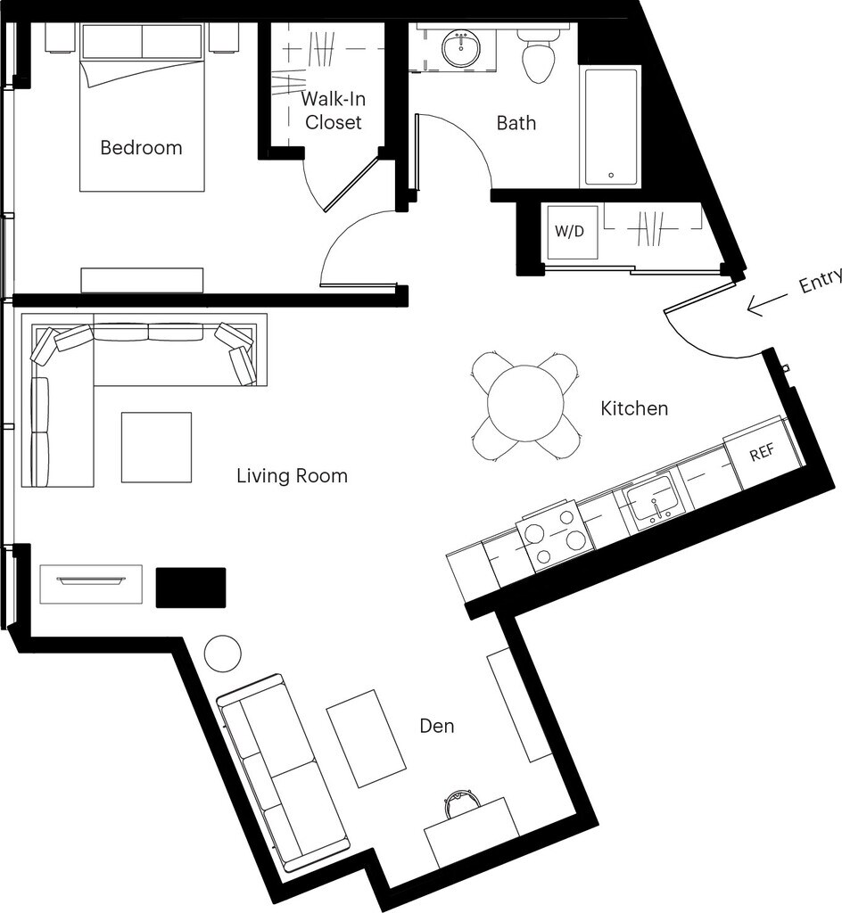 1 Dormitorio, 1 Baño, 729 pies²Disponible AhoraGalería del Modelo