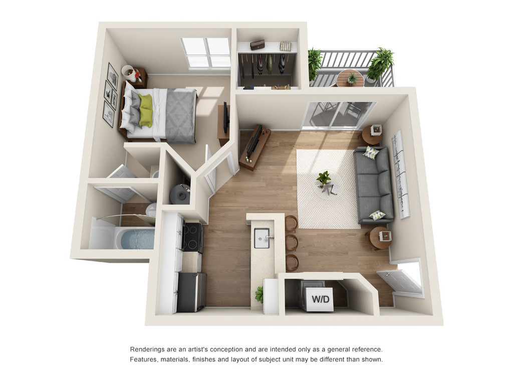 1 Dormitorio, 1 Baño, 542 pies²Galería del Modelo