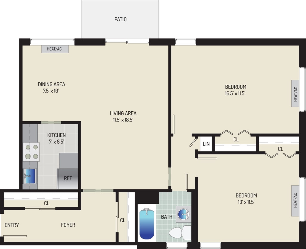 Modelo de apartamento: 1 Bedroom + 1 BathDesde $1,3131 Dormitorio, 1 Baño, 640-725 sq ftDisponible April 7, 2026![]()
