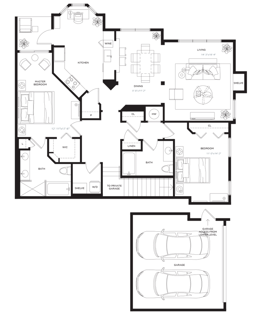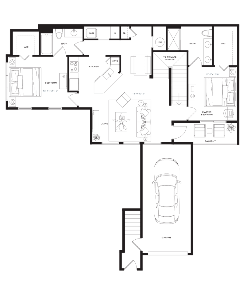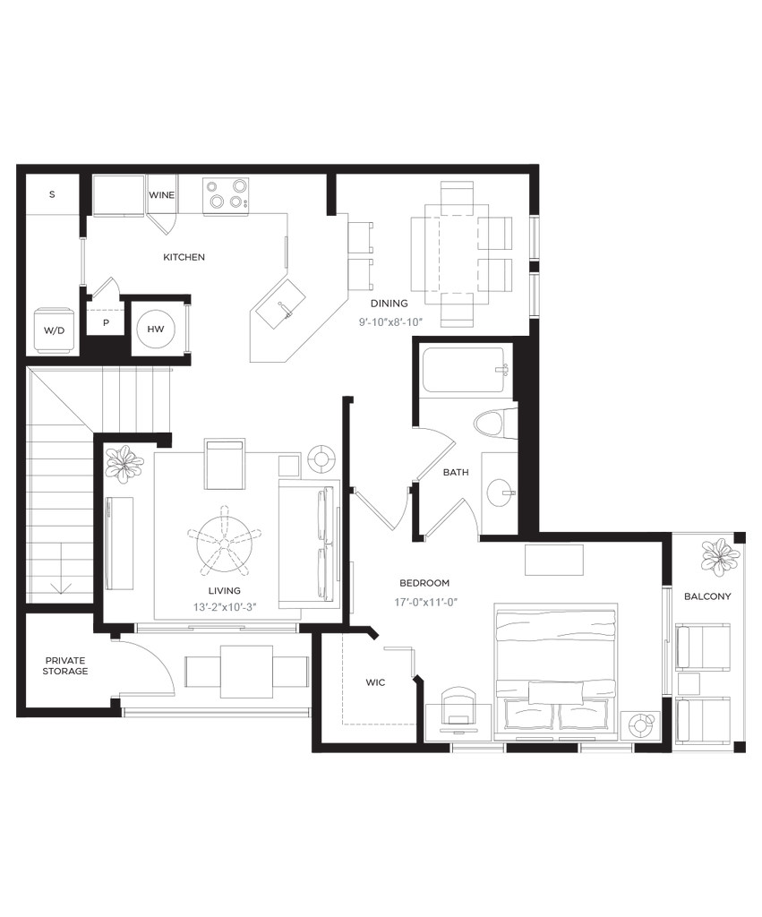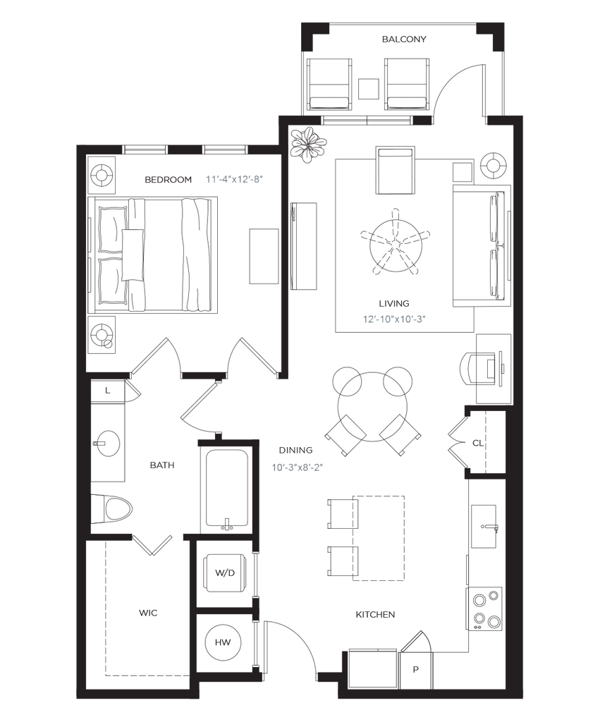 1 Dormitorio, 1 Baño, 767 pies²Disponible AhoraGalería del Modelo