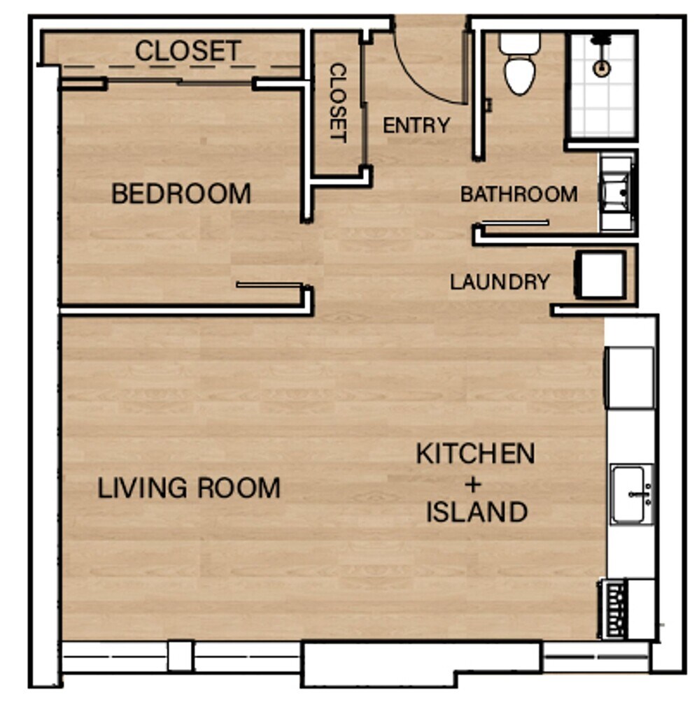 1 Dormitorio, 1 Baño, 750 pies²Disponible AhoraGalería del Modelo