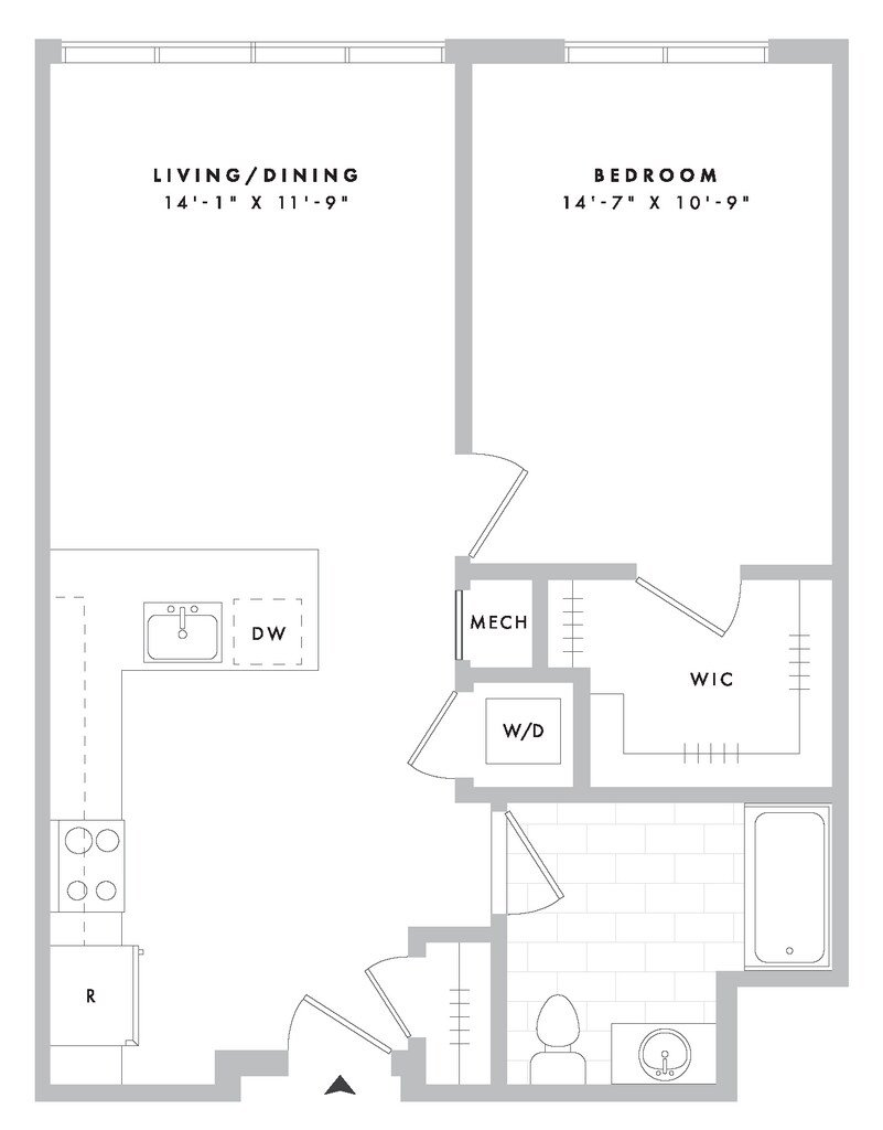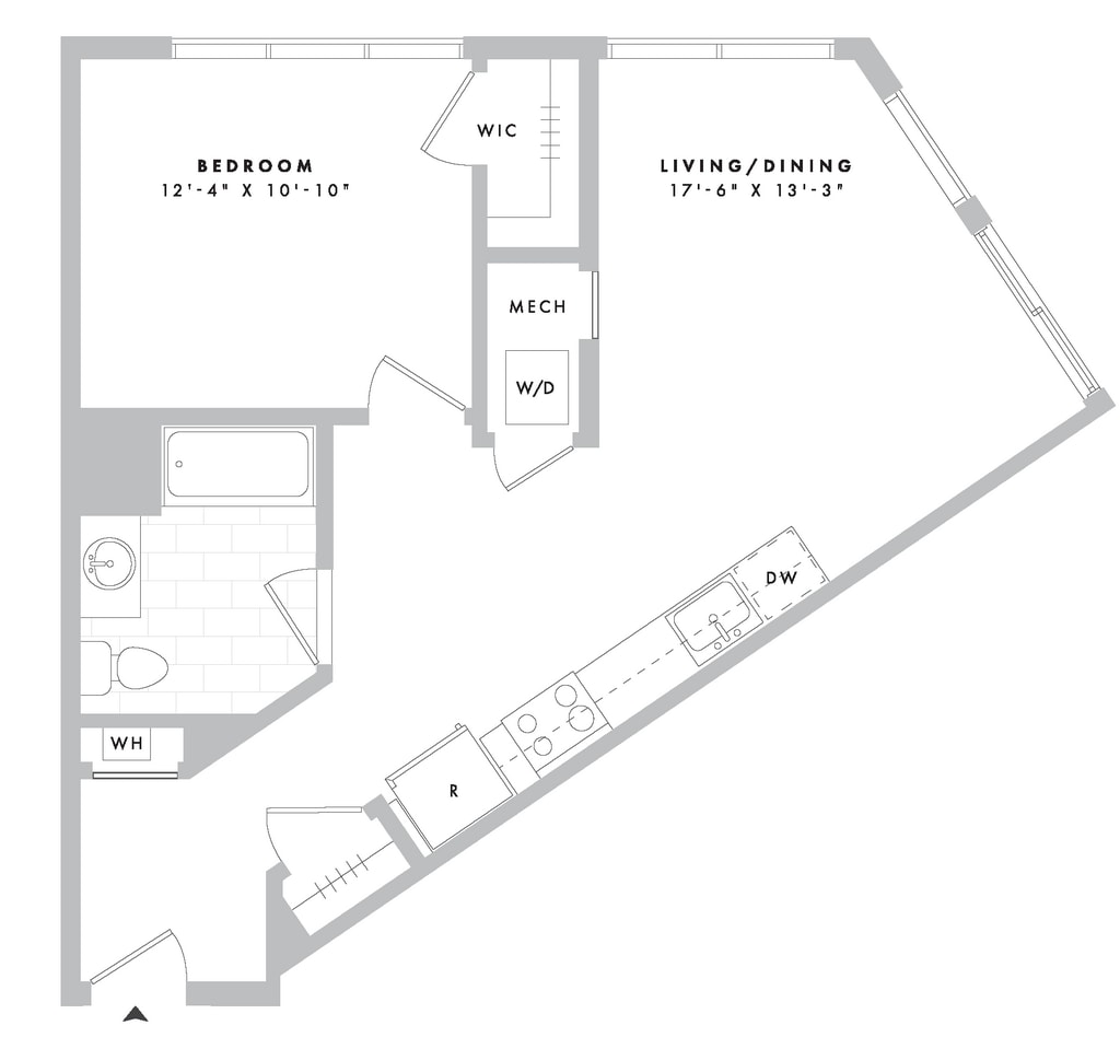 1 Dormitorio, 1 Baño, 665 pies²Disponible AhoraGalería del Modelo