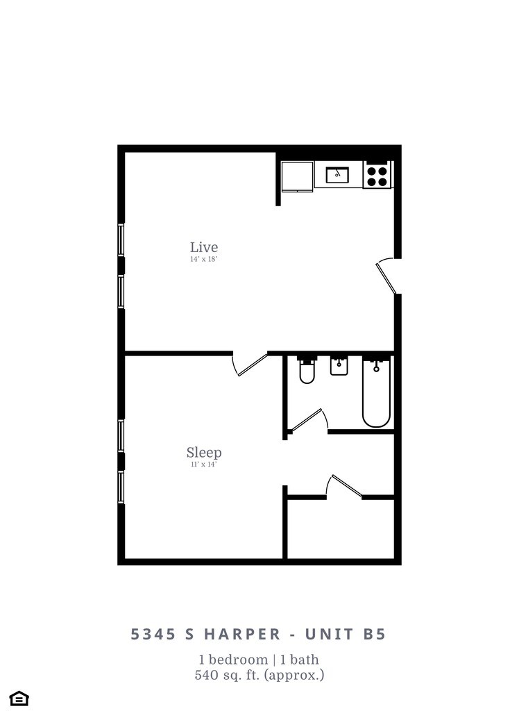1 Bedroom, 1 Bathroom (B5) - Plano 1 1 Bedroom, 1 Bathroom (B10)