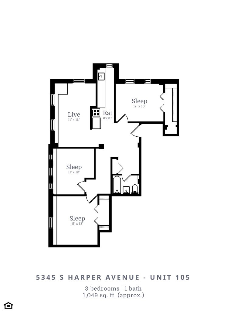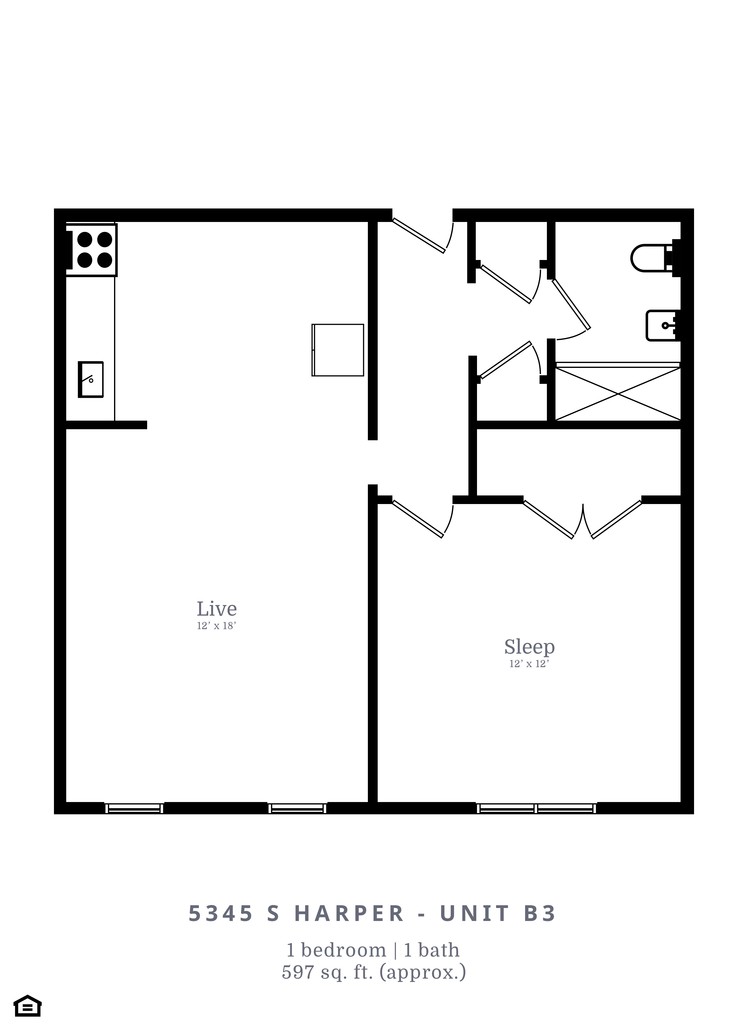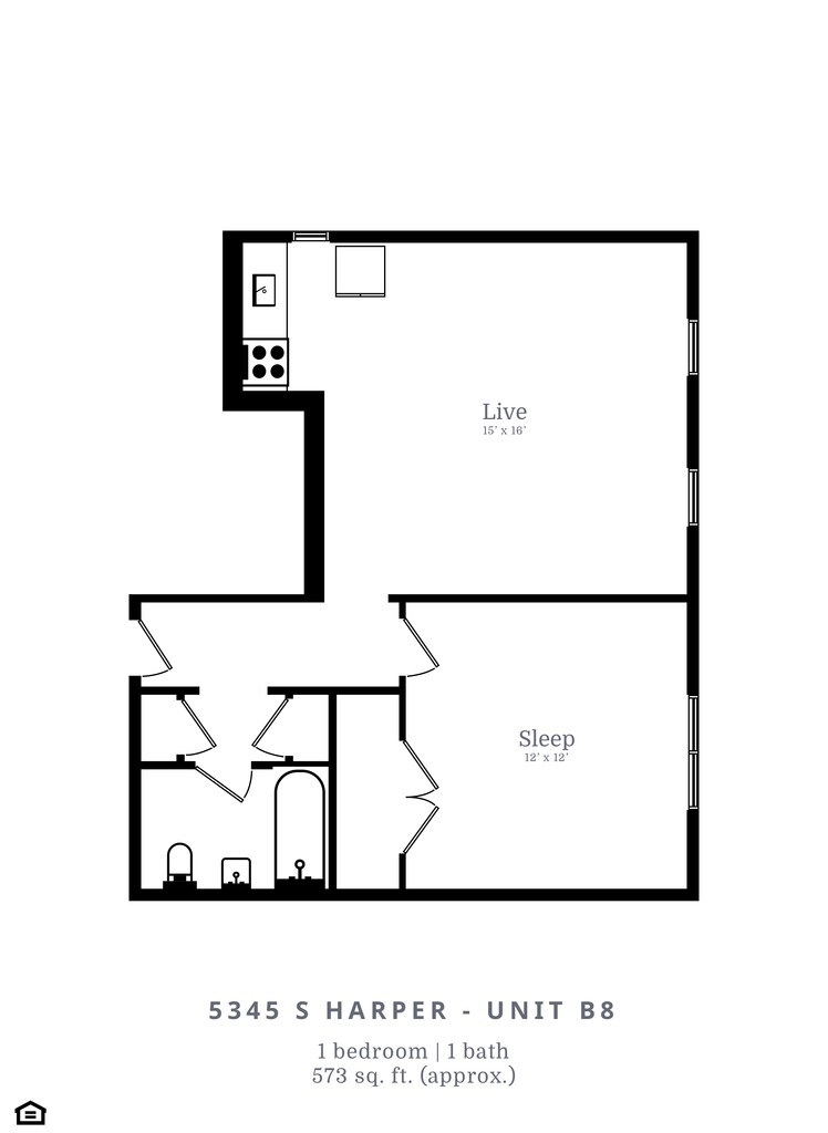 1 Bed |1 Bath (B1) - Plano 1 1 Bedroom, 1 Bathroom (B3)