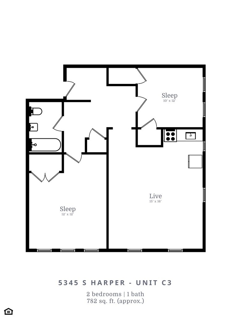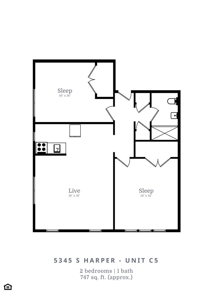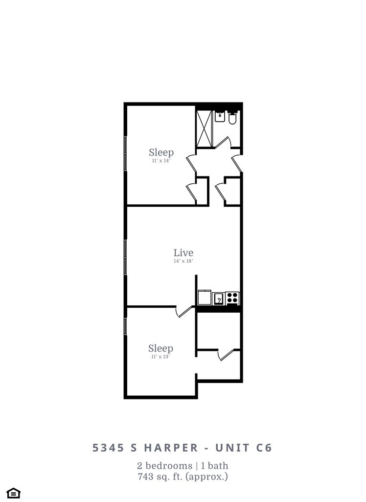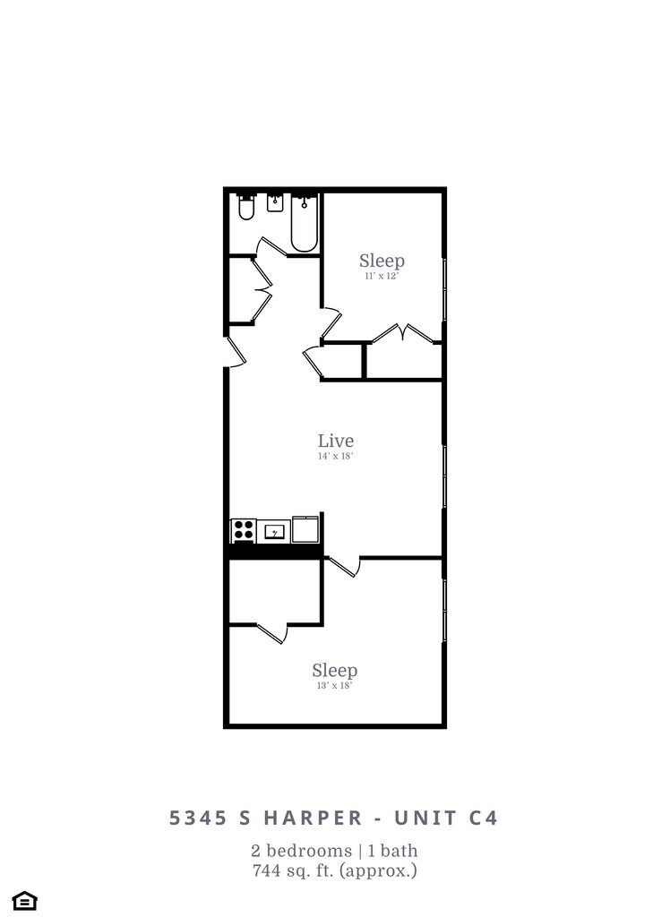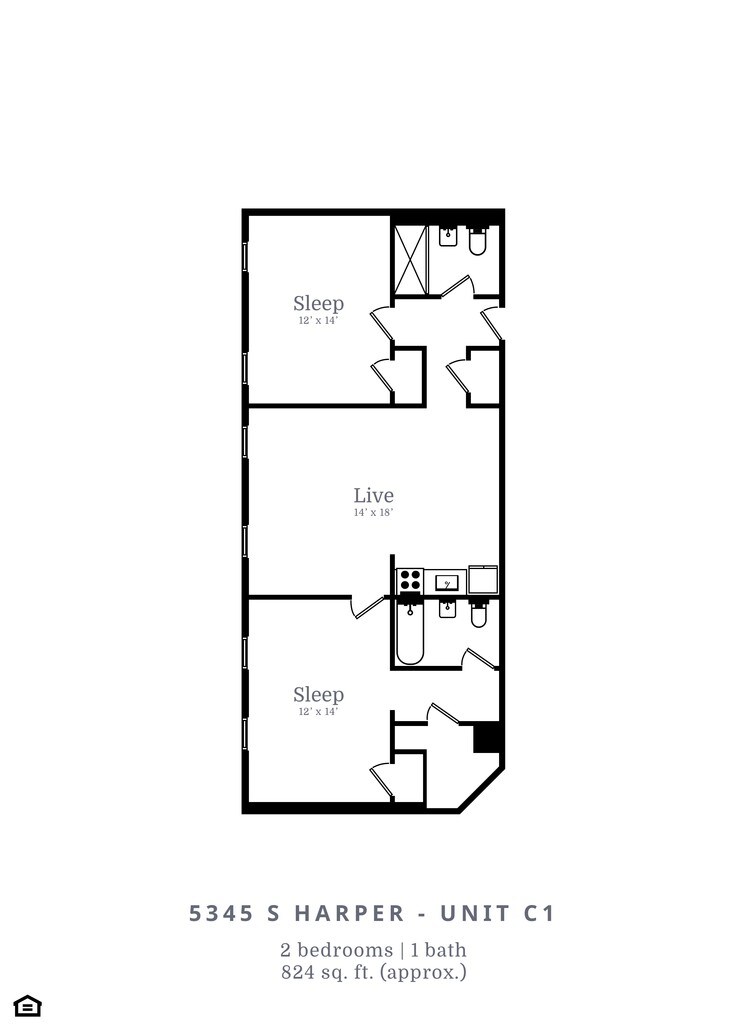2 Bed | 1 Bath (C4) - Plano 1 2 Bedroom, 1 Bathroom (C5)