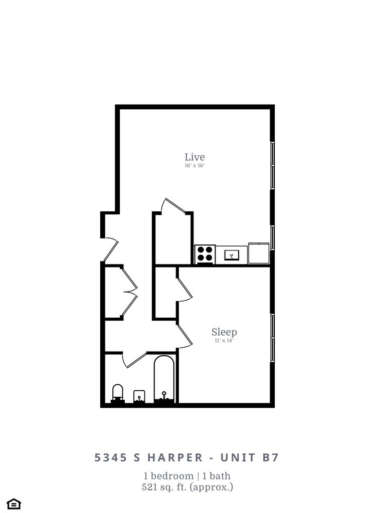 1 Dormitorio, 1 Baño, 521 pies²Galería del Modelo