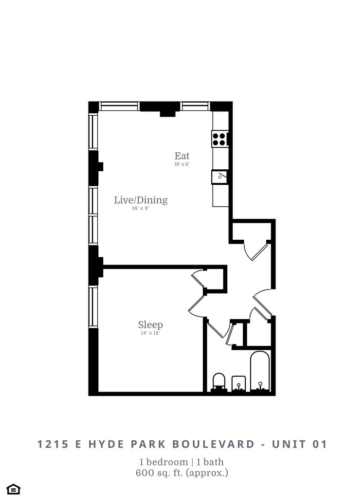 1 Bed | 1 Bath (B1) - Plano 1 1 Bed, 1 bath