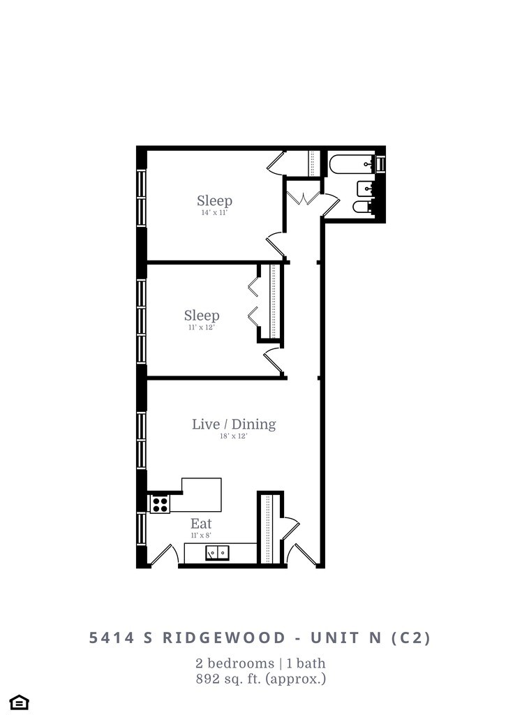2 Bed |1 Bath (C1) - Plano 2 2 Bed | 1 Bath (C2)