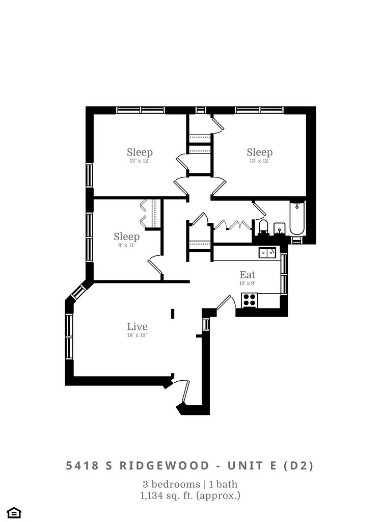 3 Bed |1 Bath (D3) - Plano 1 3 Bed | 1 Bath (D1)