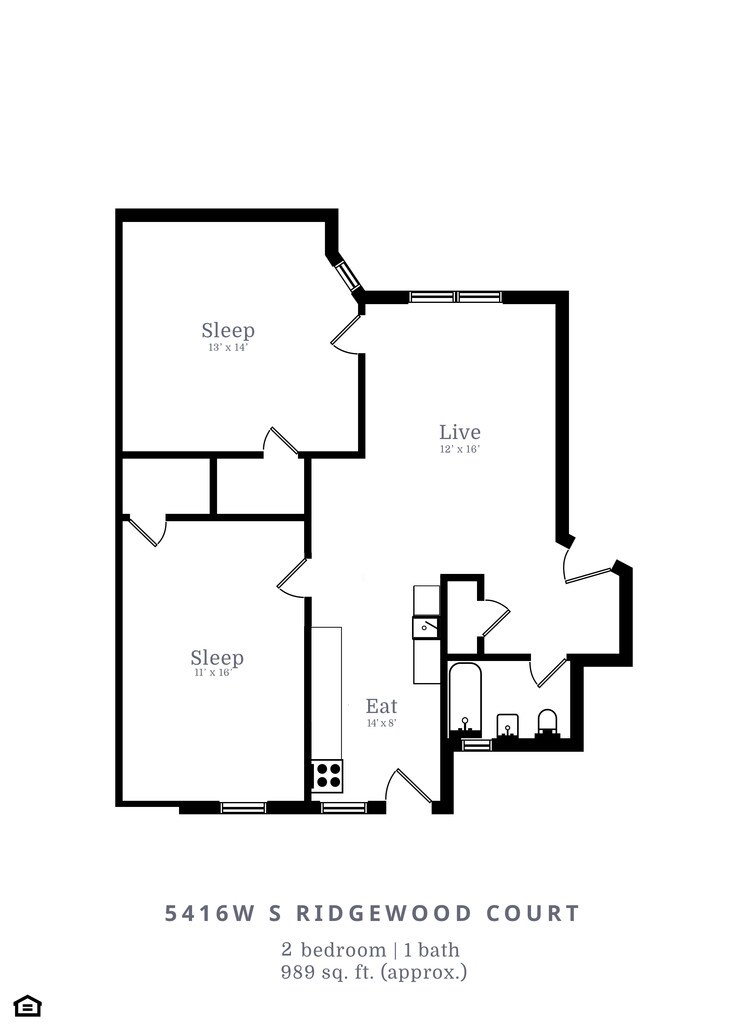 2 Dormitorios, 1 Baño, 989 pies²El más grandeEsta opción tiene las unidades más grandes para este modeloGalería del Modelo