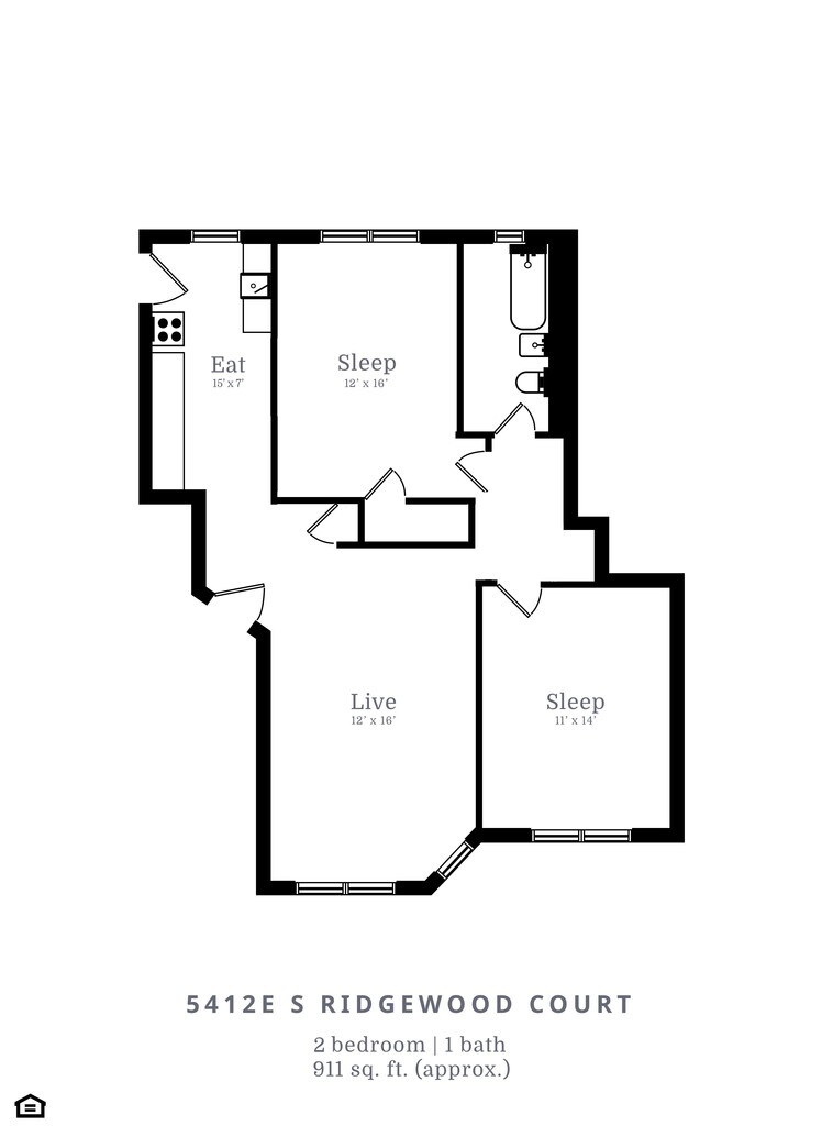 2 Dormitorios, 1 Baño, 911 pies²Galería del Modelo