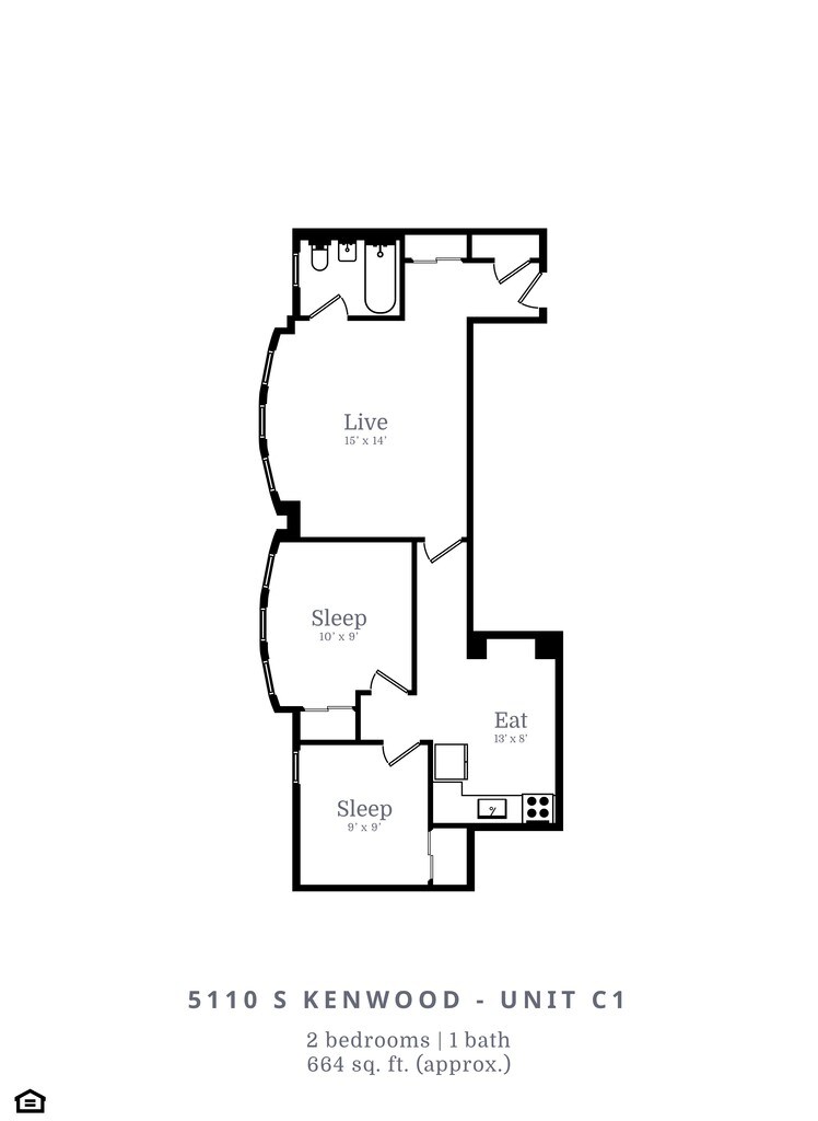 2 Bedroom, 1 Bathroom (C1) - Plano 1 2 Bedroom | 1 Bath