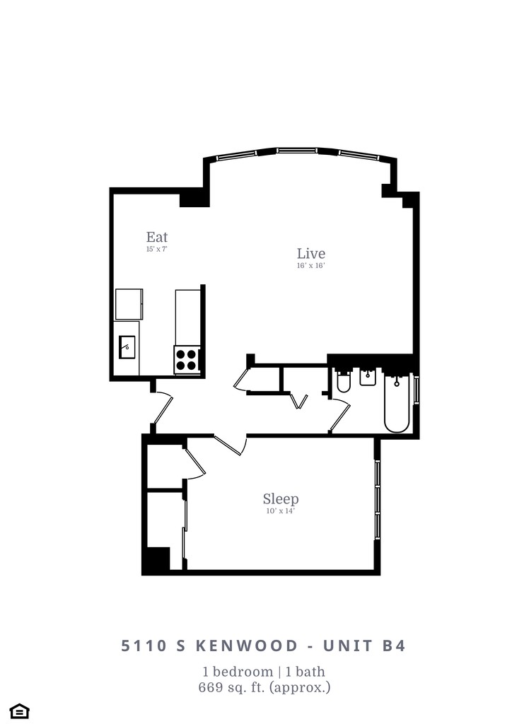 1 Bed | 1 Bath (B1) - Plano 1 1 Bed, 1 bath