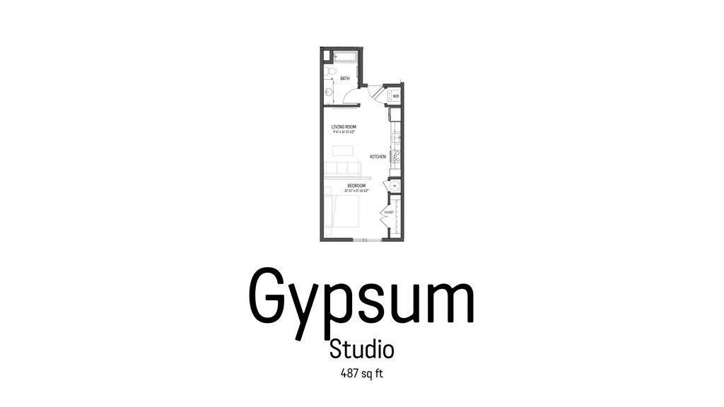 Modelo de apartamento: GypsumDesde $1,475Estudio, 1 Baño, 487 sq ftNo DisponibleGypsum - Plano 1 Ruby