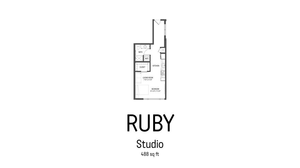 Modelo de apartamento: Ruby$1,550Estudio, 1 Baño, 488 sq ftNo DisponibleRuby - Plano 1 Pearl