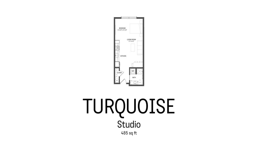 Modelo de apartamento: Turquoise$1,550Estudio, 1 Baño, 485 sq ftNo DisponibleTurquoise - Plano 1 Gypsum