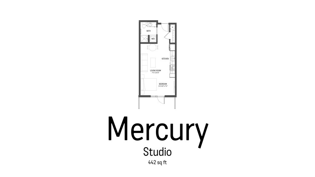 Modelo de apartamento: Amber$1,300Estudio, 1 Baño, 427 sq ftNo DisponibleAmber - Plano 1 Mercury - Furnished