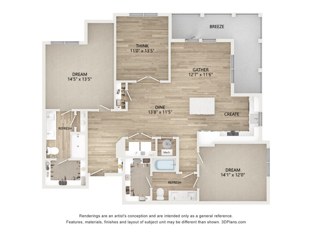 Modelo de apartamento: A1.1Desde $1,5291 Dormitorio, 1 Baño, 751 sq ftDisponible Ahora![]()