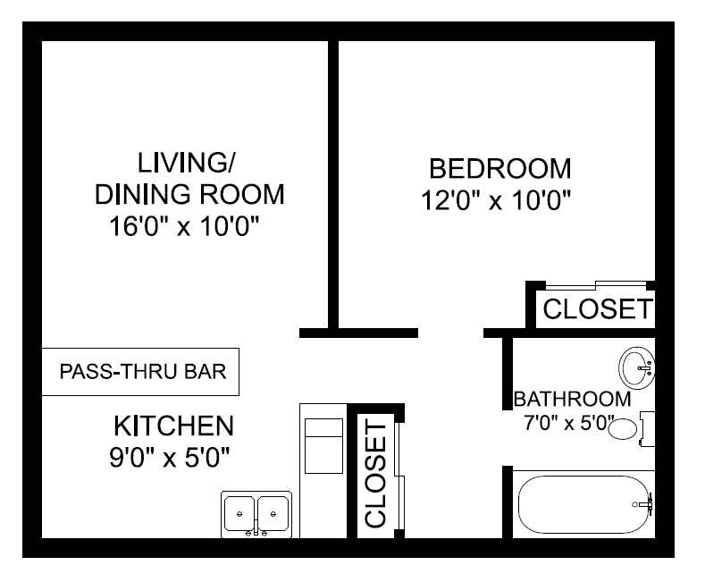 1 Dormitorio, 1 Baño, 500 pies²Galería del Modelo