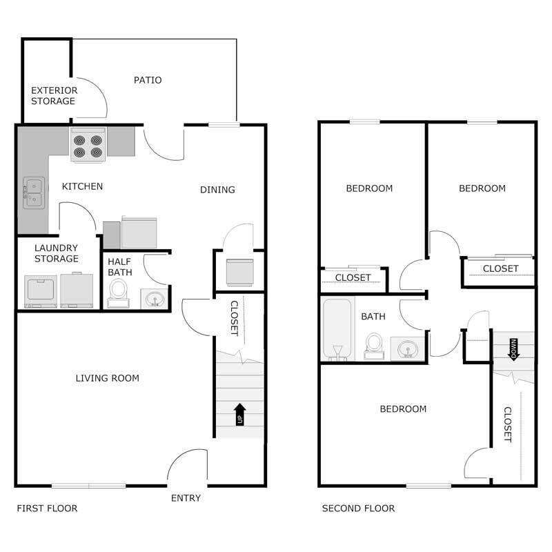 Modelo de apartamento: 3 Bedroom 1.5 Bathroom - TownhomeDesde $1,0453 Dormitorios, 1.5 Baños, 996 sq ftDisponible AhoraPlanosFotos![]()