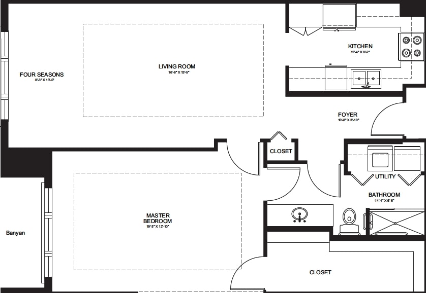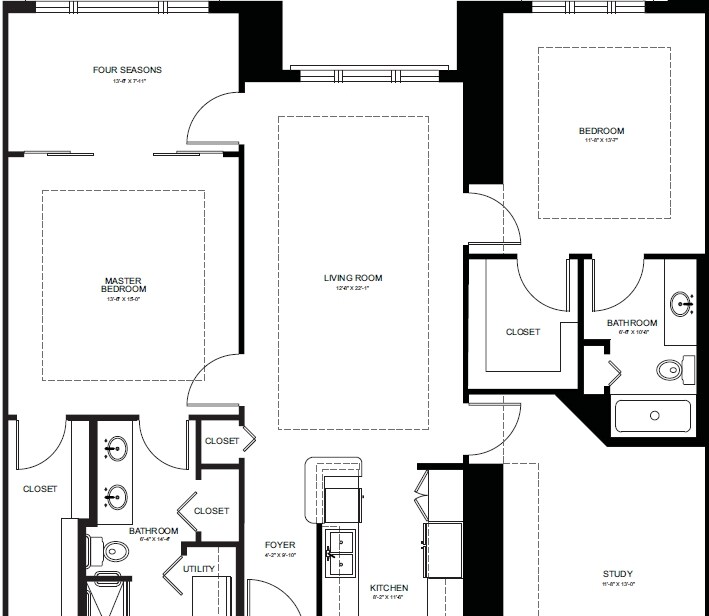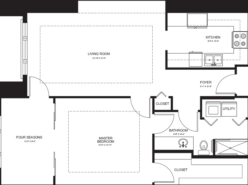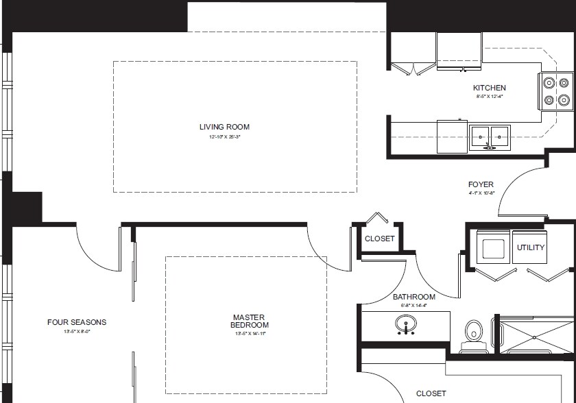 1 Dormitorio, 1 Baño, 850 pies²Detalles de Diponibilidad