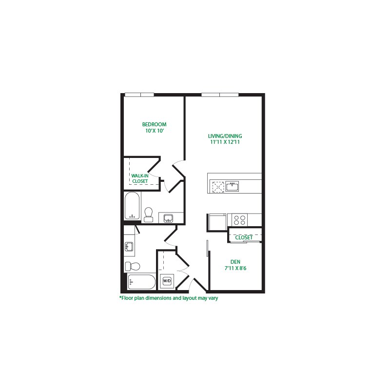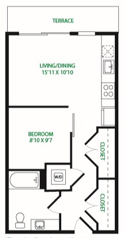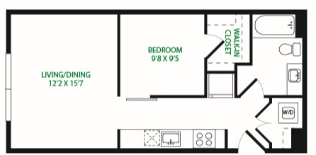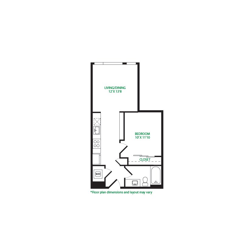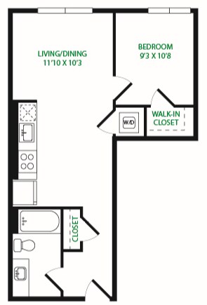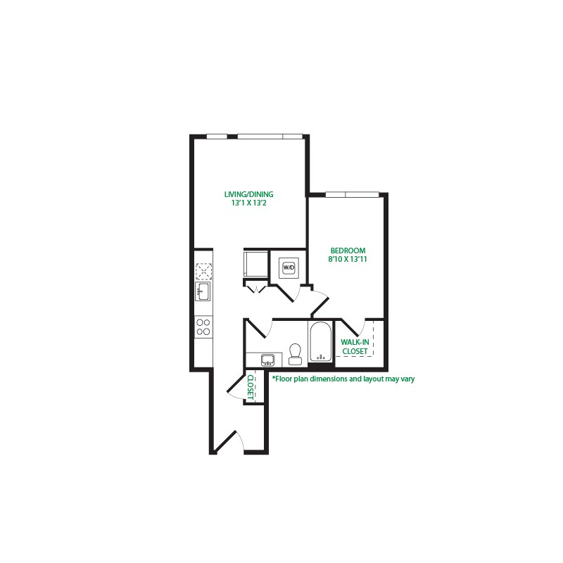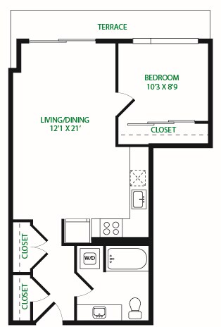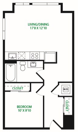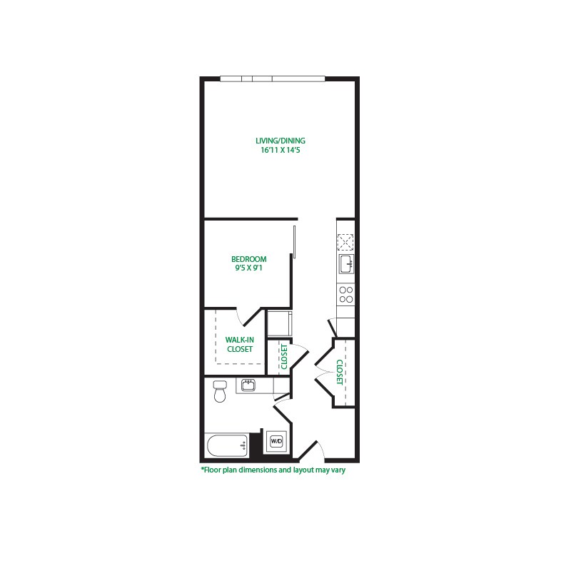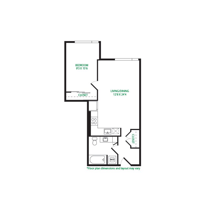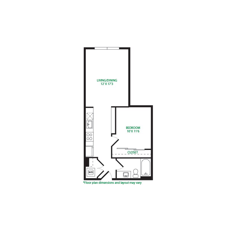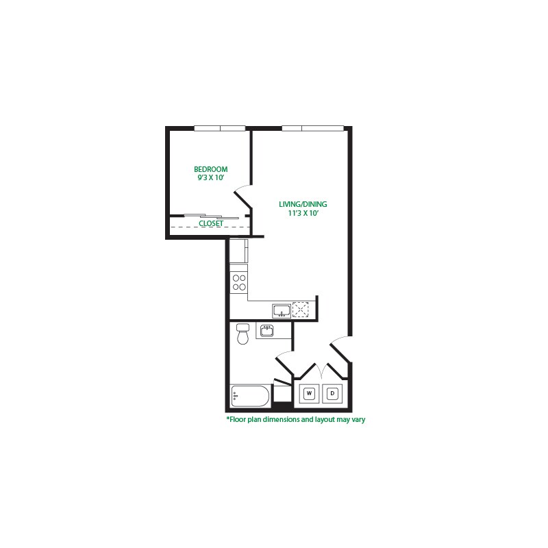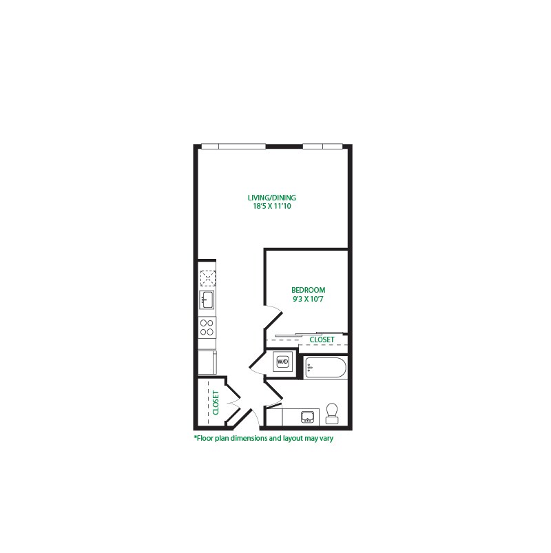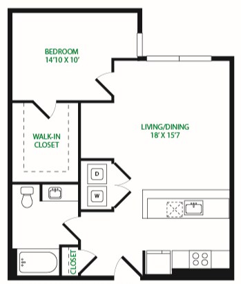 Estudio, 1 Baño, 509-615 pies²Disponible AhoraEl más grandeEsta opción tiene las unidades más grandes para este modeloGalería del Modelo