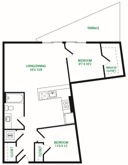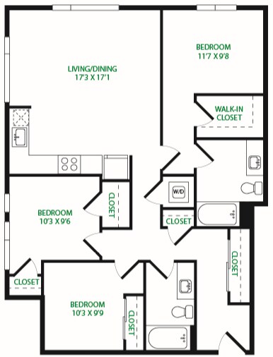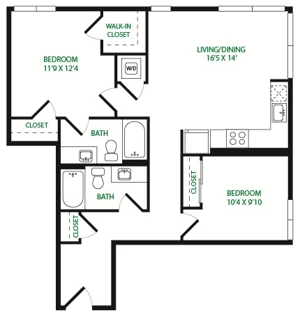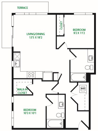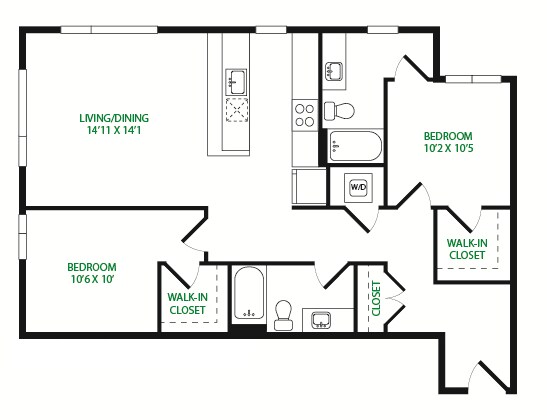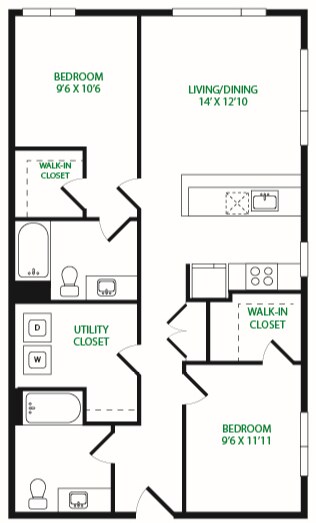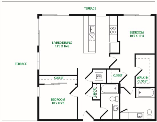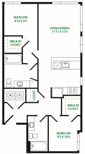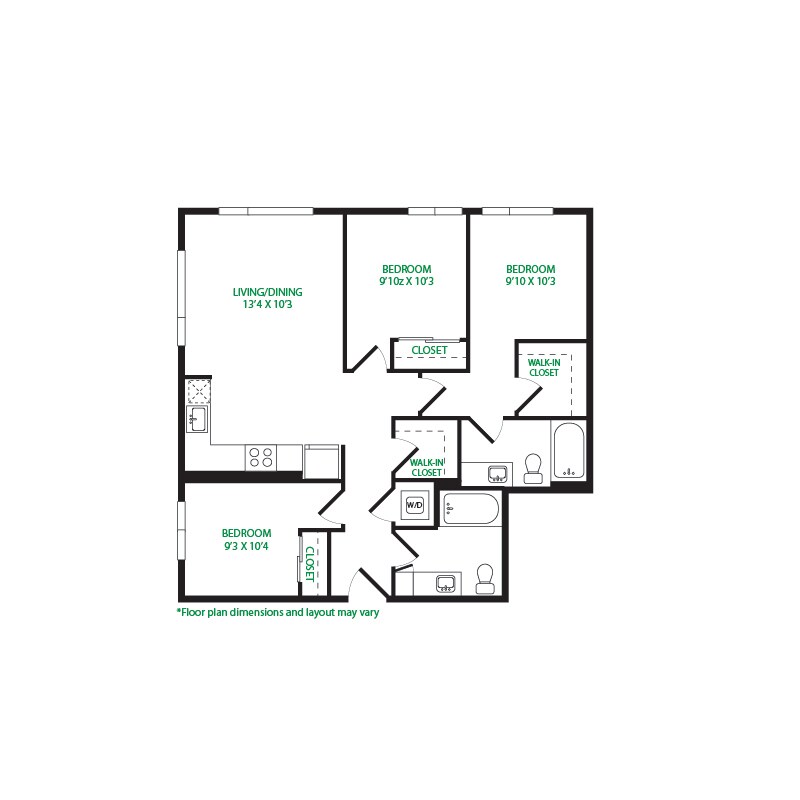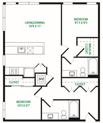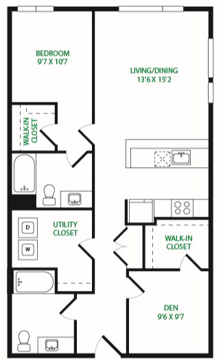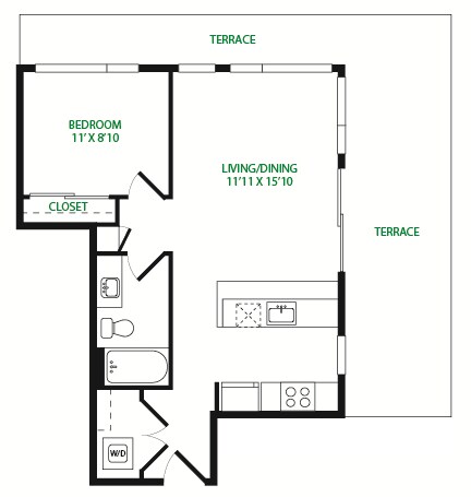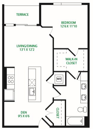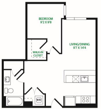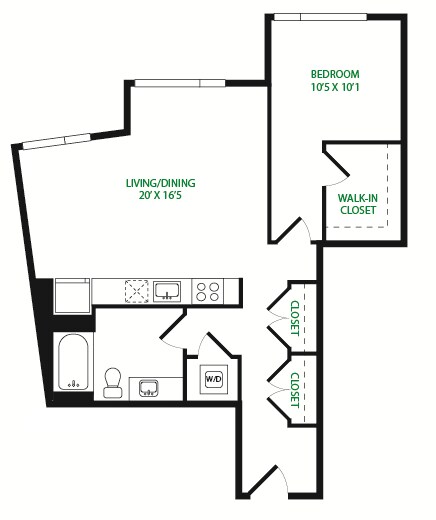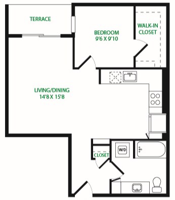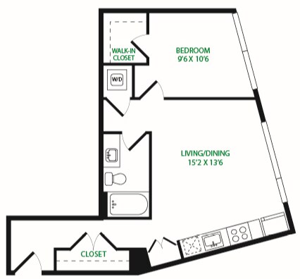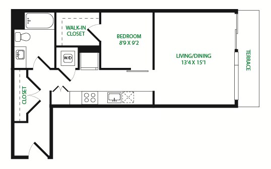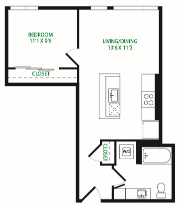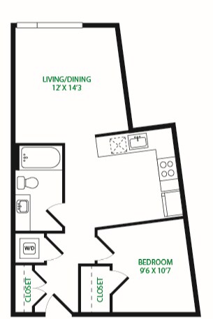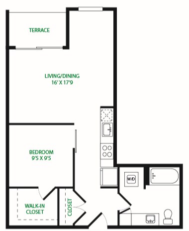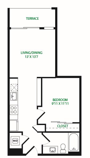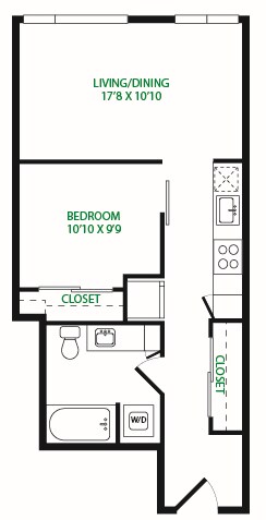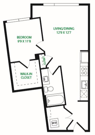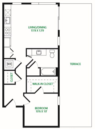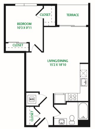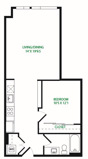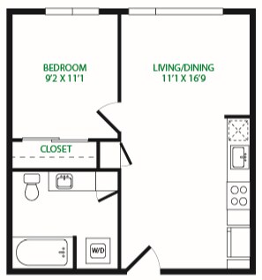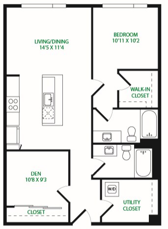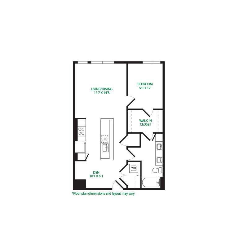 Estudio, 1 Baño, 509-615 pies²Disponible AhoraEl más grandeEsta opción tiene las unidades más grandes para este modeloGalería del Modelo
