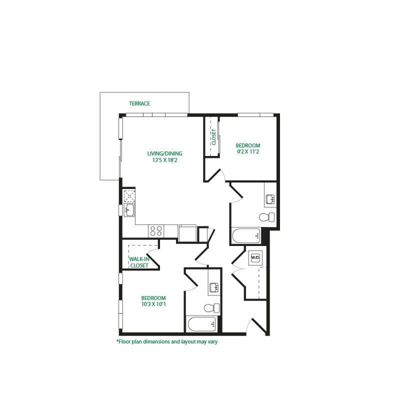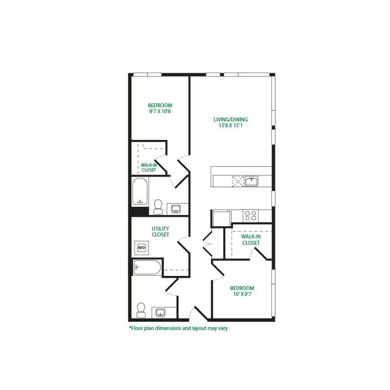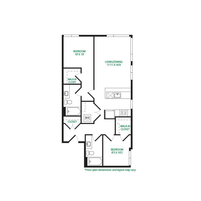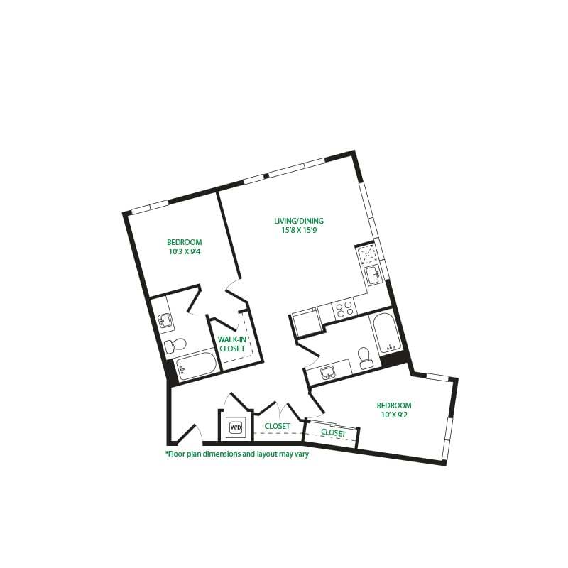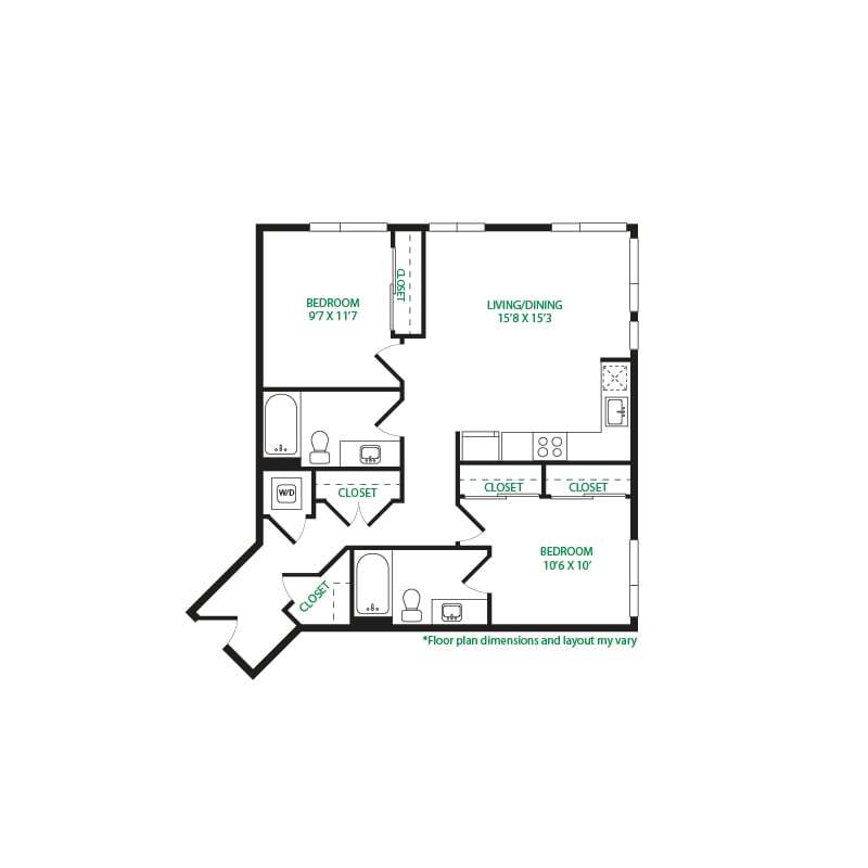 Modelo de apartamento: Studio 2WLlame para PreciosEstudio, 1 Baño, 465 sq ftNo Disponible![]()